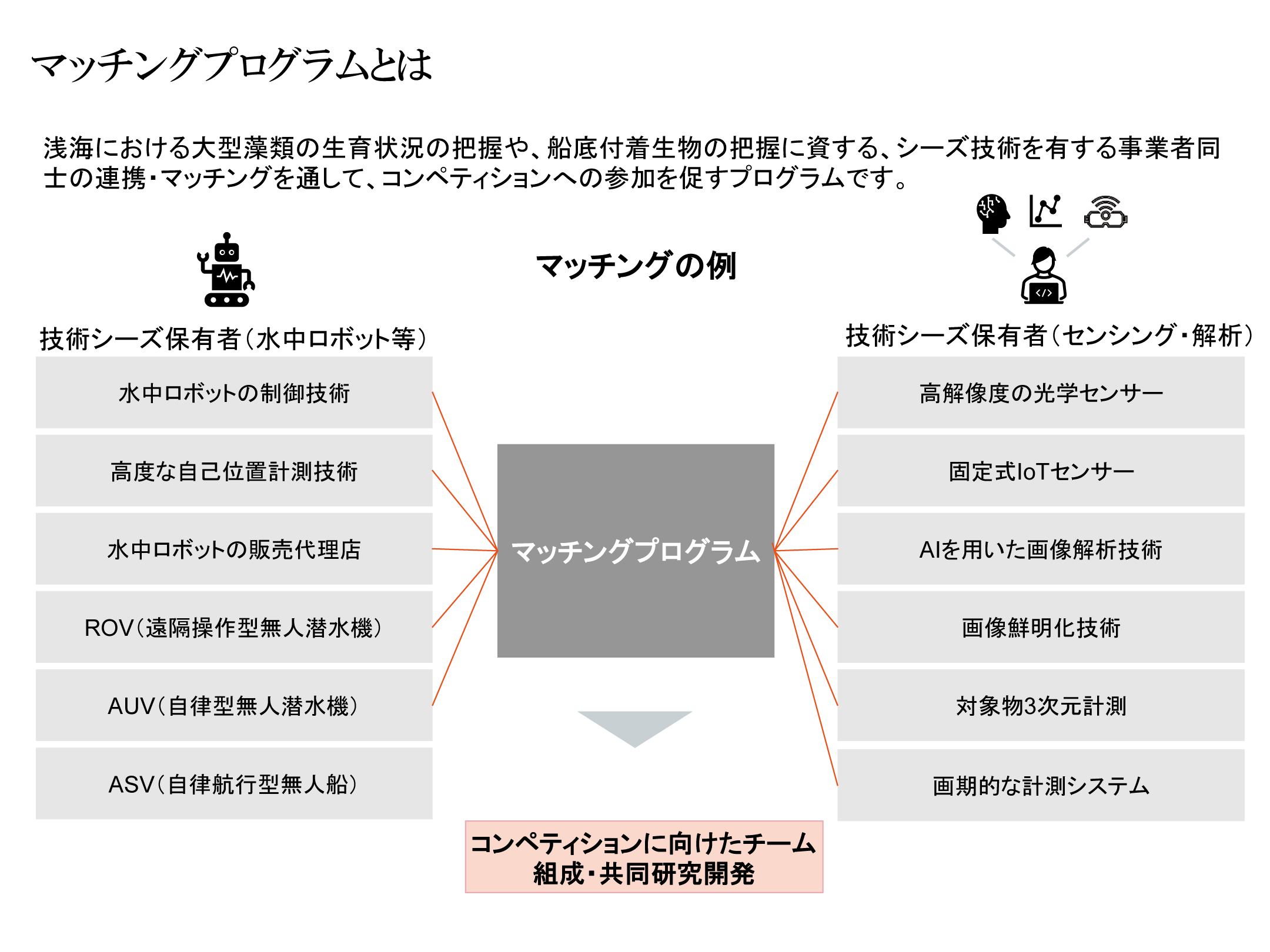 コンペティションへの参加に向けたチーミングを支援するため、事業者間のマッチングの機会を提供します。