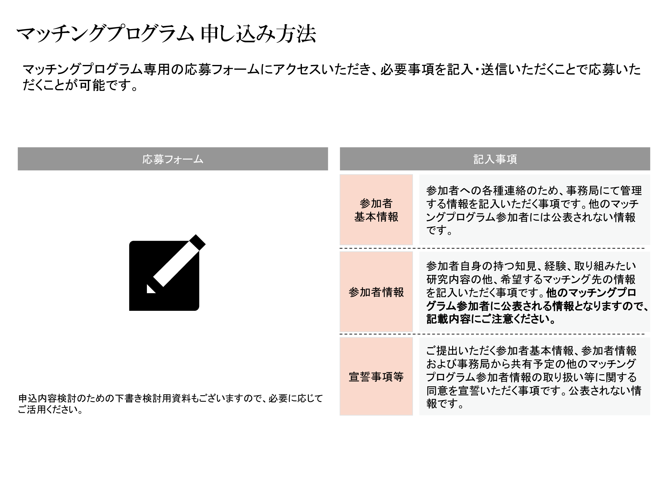 マッチングを希望される方は以下の応募フォームより、お申し込みください。